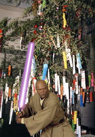 プレゼントを両手に抱えたら台湾バナナを持てなくなったんで、口にくわえて持ち帰ることにしたんだ。名案だろ? 道行くハリウッドの一般市民も感心したらしくって、しきりに指差してくんの! オイオイ、照れるって。ミットつけた片手に地球儀、片手に金属バット持ってテディベア背負って首に青筋立てて台湾バナナのふさにかぶりついてるハリウッドスターがそんなに珍しいかい? まったく、セレブは何やっても注目されちまう。ま、オレも適当に