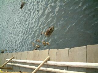 写真? パークのそこかしこにいた鴨だよ。人に慣れてるせいか相当近寄っても逃げないんだぜ? よ〜しよしよしよし。いい子だ。♪世界中〜誰だって〜微笑めば仲良しさ〜みんな輪になり手をつなごう〜、手を〜つなご〜、つなご〜、なご〜、つな〜、ご〜、ごな〜・・・