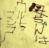 ドッキューン! ![]() ボンジョビ(以下ボン)「パパ! ウルトラマンコって何?」 オレ「わっ! ビックリした〜。お前、なんで父ちゃんの考えてることが中途半端にわかるんだぴょん?」 動揺して思わず語尾がおかしくなっちまった。・・・あ! ![]() ボンジョビが指差したテーブルの上を見てビックリ。考えごとしながら無意識にカレーで相合傘書いてたのさ。あわてて舐めたよ。 ボ ン「ウルトラマンコって誰!?」 オ レ「あ? ああ、これな。書きかけだよ。気にすんな」 ボ ン「ウルトラマンコって誰ウルトラマンコって誰ウルトラマンコって誰!!!」 オ レ「うるせ〜な〜。お前ときたら一度気になると納得するまでとことん怒鳴りちらすよな。将来、粘着質の学者になるかもしれねぇ。いや、声がでかい舞台俳優に向いてるか。い〜や待て待て。声がでかい粘着質って可能性も有り、か?」 ボ ン「ウルトラマンコってパパのこと?」 オ レ「ば〜か。違うよ」 ボ ン「じゃあママ?」 オ レ「ちがっ・・・待てよ。一理あるな。お前たまにはいいこと言うじゃねぇか。ある意味ありゃウルトラマンコかもしんね。サイズ的にさ。HAHAHA! お前の母ちゃんウルトラマンコ! スゲーな。父ちゃんとお前だけの秘密だぜ? なんだ? 後ろ? いる?ぺぶしゃ!」 キッチンで洗い物してたはずの母ちゃんに延髄ラリアットくらって顔面カレーまみれになったよ。やれやれ。 ウルトラマンコは遠くにありて思うもの・・・か。 5月15日「母の日のすれ違い」