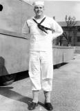 お土産に写真つきのセーラー服もらったよ。なんでも今は引退して海軍の払い下げ品を売ってるんだってさ。なんか汗くせ〜な〜コレ。
